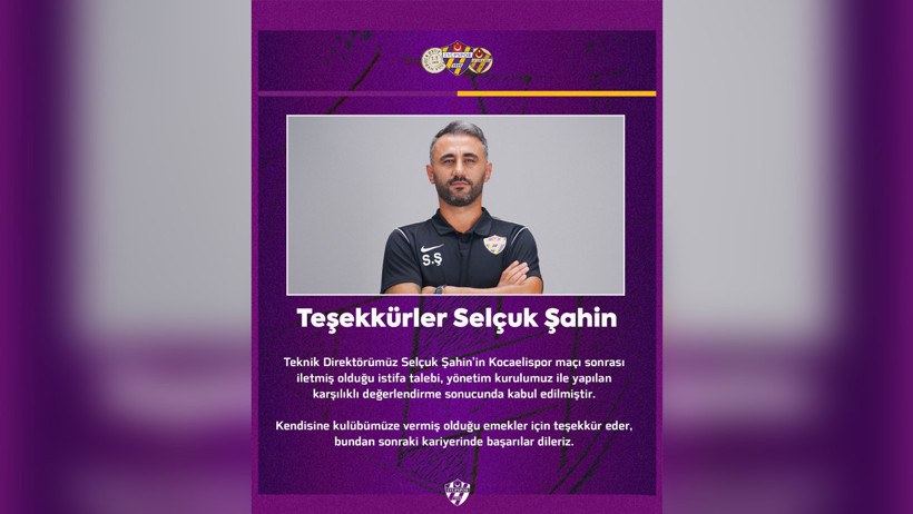 Eyüpspor, Kocaelispor maçının ardından istifa eden Selçuk Şahin’in talebini kabul ettiğini açıkladı. Kulübün resmî sosyal medya hesabından yapılan açıklamada şu sözlere yer verildi: