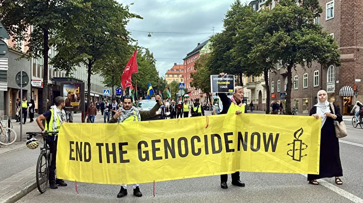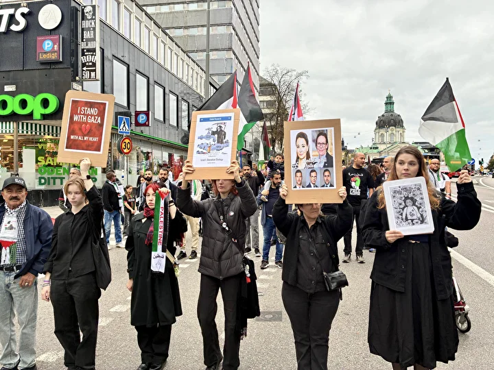 Çok sayıda sivil toplum kuruluşunun çağrısıyla Odenplan Meydanı’nda toplanan yüzlerce kişi, İsrail’e silah ambargosu uygulanması, İsrailli şirketlerin boykot edilmesi ve İsrail ile tüm ilişkilerin kesilmesini istedi.